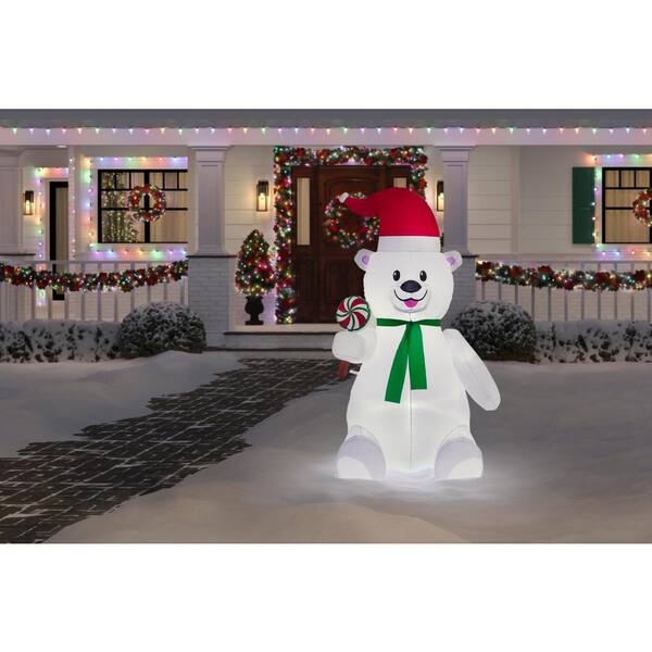 6 ft Pre-Lit LED Airblown Polar Bear with Lollipop Christmas Inflatable