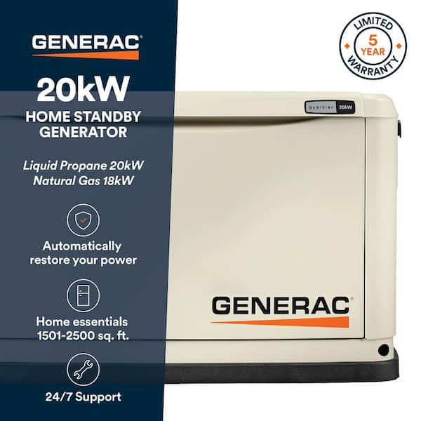 20,000-Watt (LP)/17,000-Watt (NG) Air Cooled Standby Generator, Aluminum Enclosure