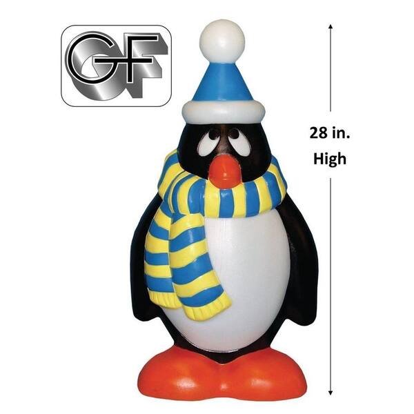 28 in. Holiday Penguin Statue with Blue and Yellow Scarf