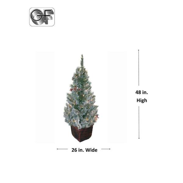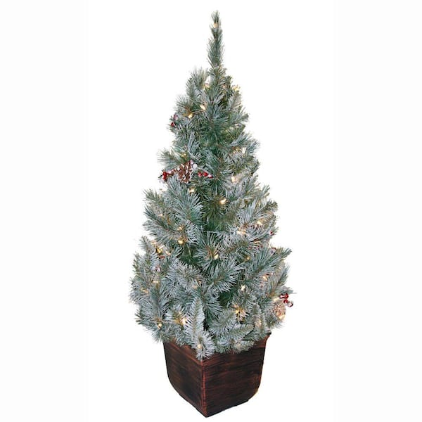 4 ft. Pre-Lit Potted Frosted Pine Artificial Christmas Tree with Berries and Pine Cones