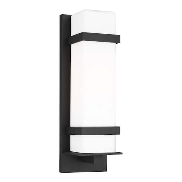 Alban Medium 1-Light Black Outdoor Wall Lantern Sconce With Square Etched Opal Glass Shade