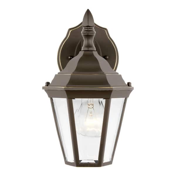 Bakersville 6.5 in. 1-Light Antique Bronze Traditional Outdoor Wall Lantern Sconce with Clear Beveled Glass Panels