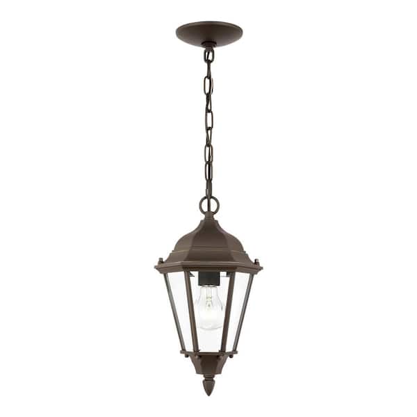 Bakersville 7.875 in. 1-Light Antique Bronze Traditional Outdoor Hanging Pendant Light with Clear Beveled Glass Panels