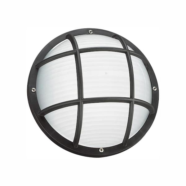 Bayside Collection Black 1-Light Outdoor 6 in. Bulkhead with Frosted Diffuser and LED Bulb