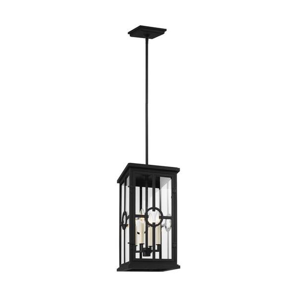 Belleville Medium 4-Light Textured Black Hanging Pendant with Clear Glass Panels