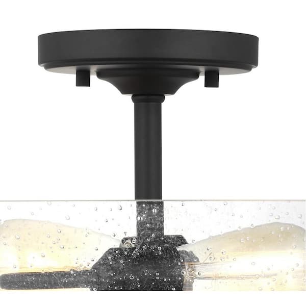 Belton 15 in. 2-Light Midnight Matte Black Semi-Flush Mount with Clear Seeded Glass Shade