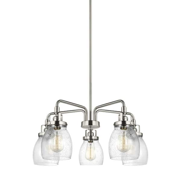 Belton 5-Light Brushed Nickel Chandelier with Clear Seeded Glass Shades