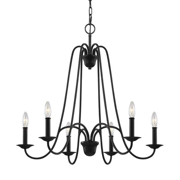 Boughton 6-Light Antique Forged Iron Transitional Hanging Candlestick Chandelier