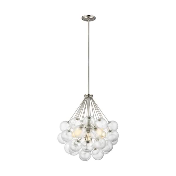 Bronzeville 3-Light Brushed Nickel Hanging Pendant with Seeded Glass Globes
