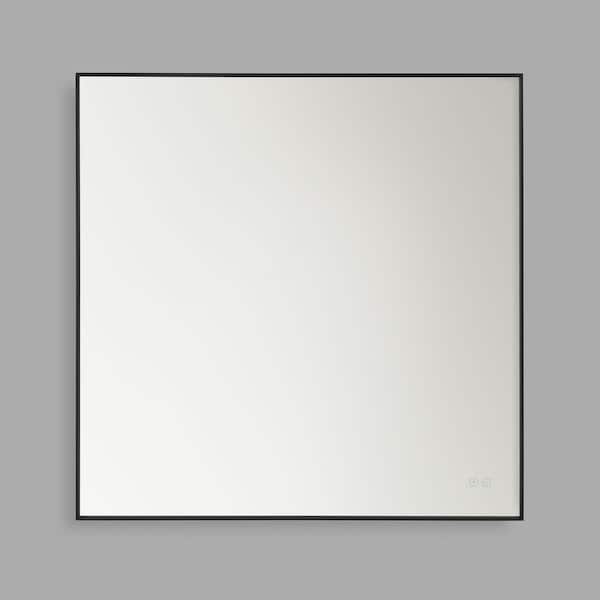 Cadre 36 in. x 36 in. Midnight Black Integrated LED Illuminated Dimmable Vanity Light Mirror