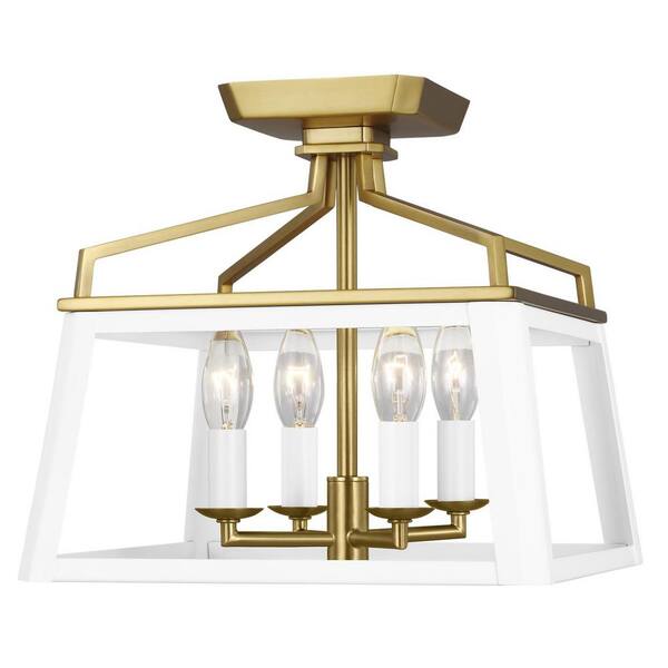 Carlow 12 in. W x 11.25 in. H 4-Light Matte White Traditional Indoor Dimmable Flush Mount with Steel Square Frame