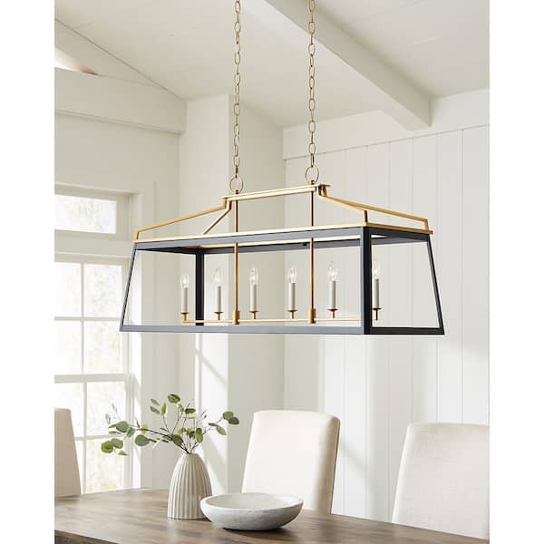 Carlow 48.125 in. W x 23.5 in. H 6-Light Midnight Black Indoor Dimmable Linear Lantern Chandelier with No Bulbs Included