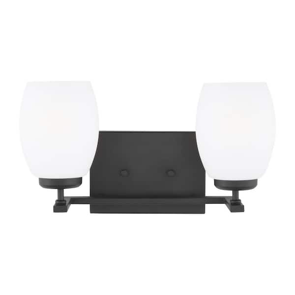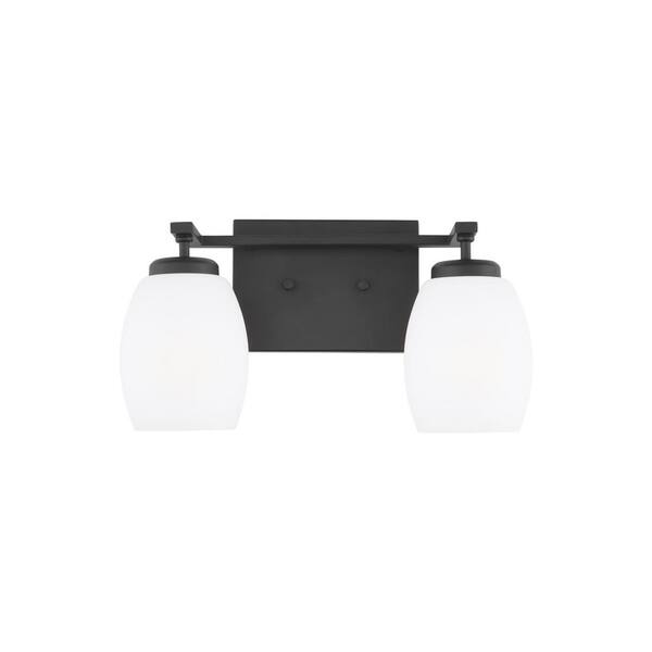 Catlin 14.25 in. 2-Light Midnight Black Vanity Light with Etched White Inside Glass Shades