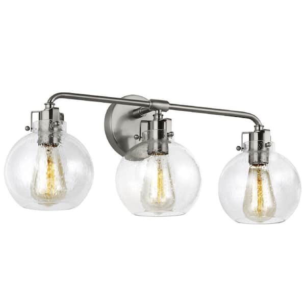 Clara 24 in. 3-Light Satin Nickel Vanity Light Clear Seeded Glass Shades