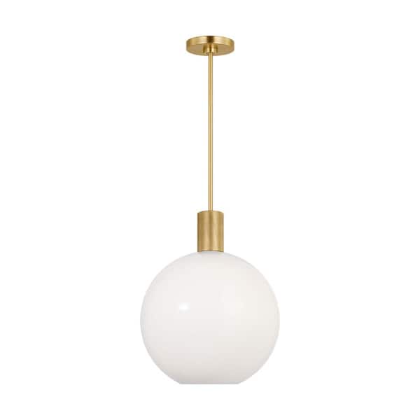 Colewood 15.5 in. W x 19.25 in. H 1-Light Satin Brass Modern Pendant Light with Milk Glass Shade No Bulb Included