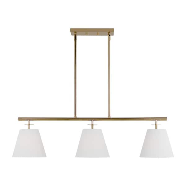 Crestgrove 3-Light Satin Brass Linear Chandelier with White Linen Shades