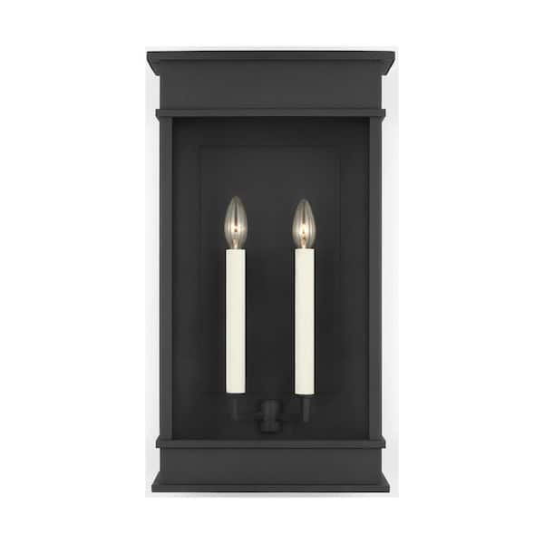 Cupertino 19.125 in. H Textured Black Outdoor Hardwired Dimmable Large Wall Lantern Sconce with No Bulbs Included