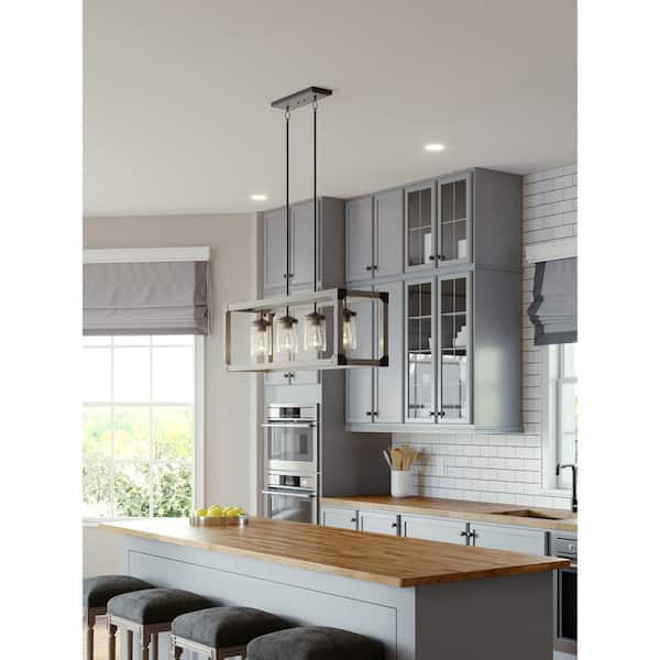 Dunning 4-Light Driftwood Gray Rectangular Farmhouse Linear Island Hanging Chandelier with Clear Seeded Glass Shades