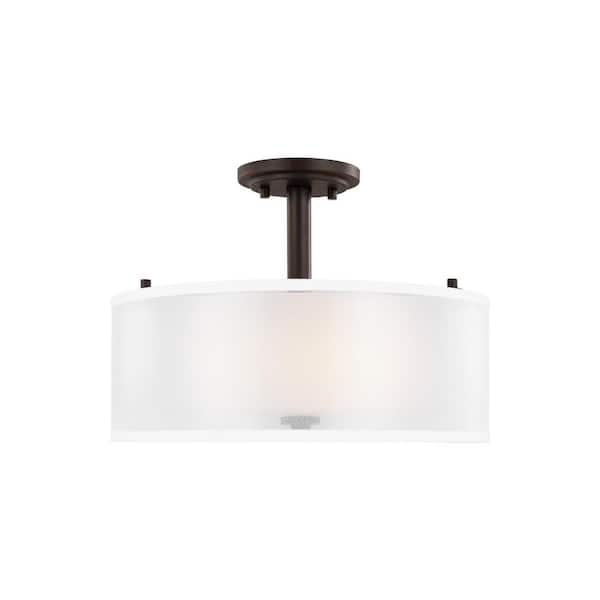 Elmwood Park 15 in. 2-Light Bronze Modern Transitional Semi-Flush Mount with Off White Organza Silk Shade