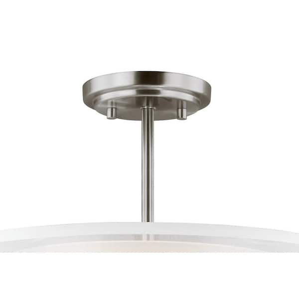 Elmwood Park 15 in. 2-Light Brushed Nickel Semi-Flush Mount with Satin Etched Glass Shade