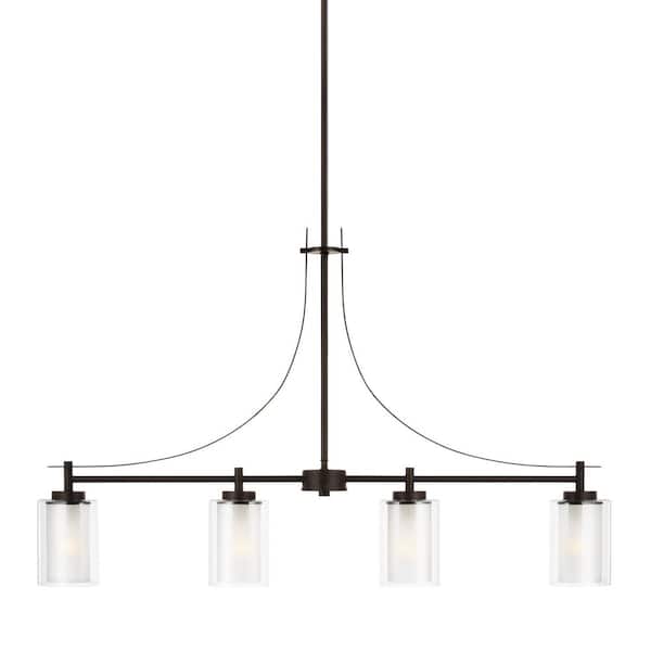 Elmwood Park 40 in. 4-Light Bronze Modern Transitional Linear Island Hanging Pendant with Satin Etched Glass Shades