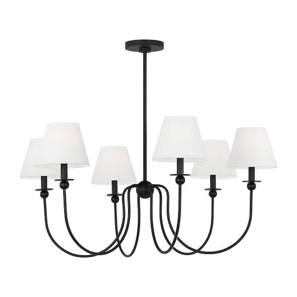 Elsay 36.38 in. W x 17.25 in. H 6-Light Midnight Black Transitional Chandelier with White Linen Fabric Shades