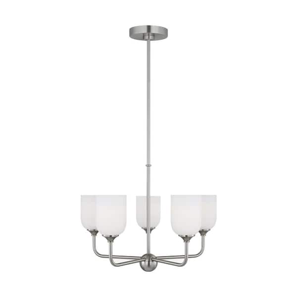Emile Medium 5-Light Brushed Steel Chandelier with Etched White Glass Shades