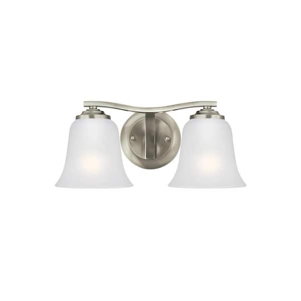 Emmons 14 in. 2-Light Brushed Nickel Traditional Transitional Wall Bathroom Vanity Light with LED Bulbs