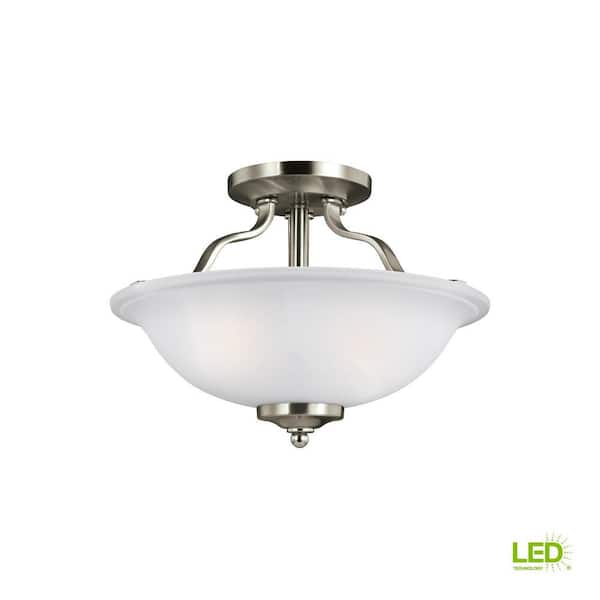 Emmons 2-Light Brushed Nickel Semi-Flush Mount with LED Bulbs