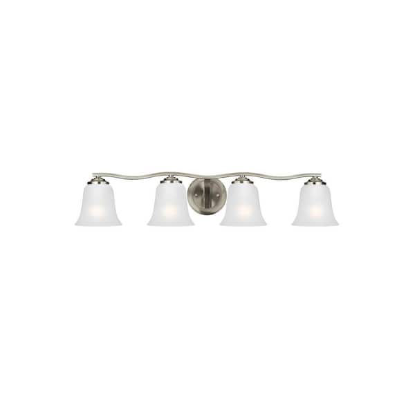 Emmons 31 in. 4-Light Brushed Nickel Traditional Transitional Bathroom Vanity Light with Satin Glass and LED Bulbs
