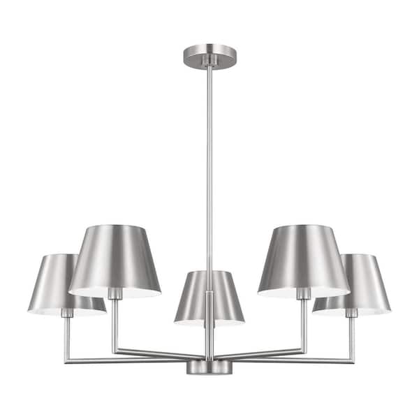 Ender 32.63 in. W x 10.5 in. H 5-Light Brushed Nickel Modern Chandelier with Steel Shades and No Bulbs Included