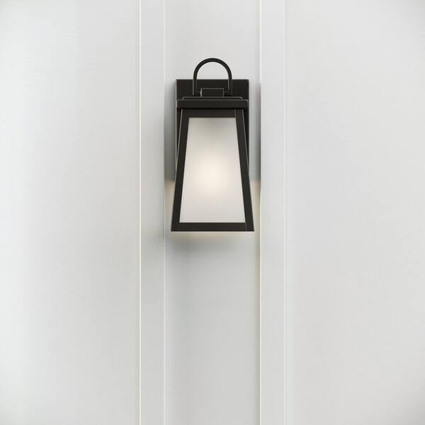 Founders Small 1-Light Black Exterior Outdoor Wall Sconce with Clear and White Glass Panels Included, No Bulb Included