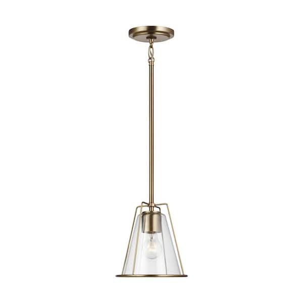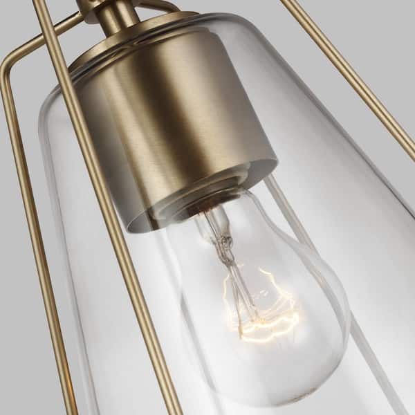 Framework 1-Light Satin Brass Hanging Pendant with Clear Glass Shade