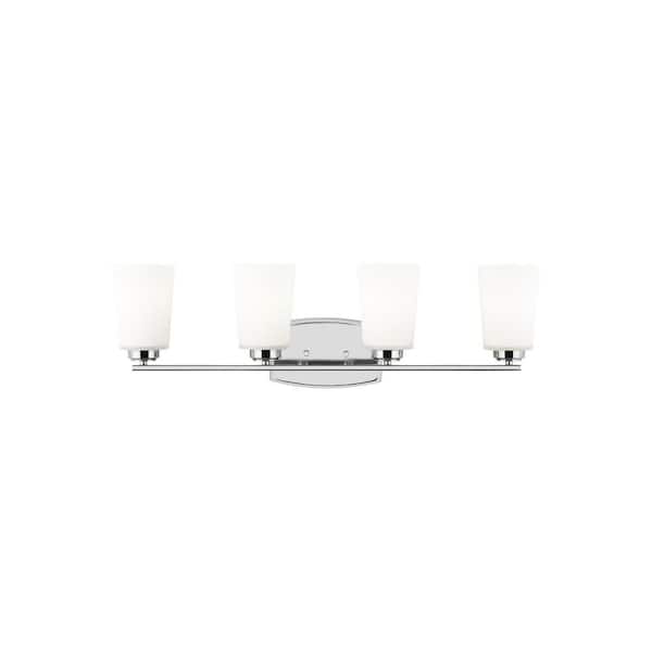 Franport 29 in. 4-Light Chrome Traditional Chic Wall Bathroom Vanity Light with Etched White Glass Shades