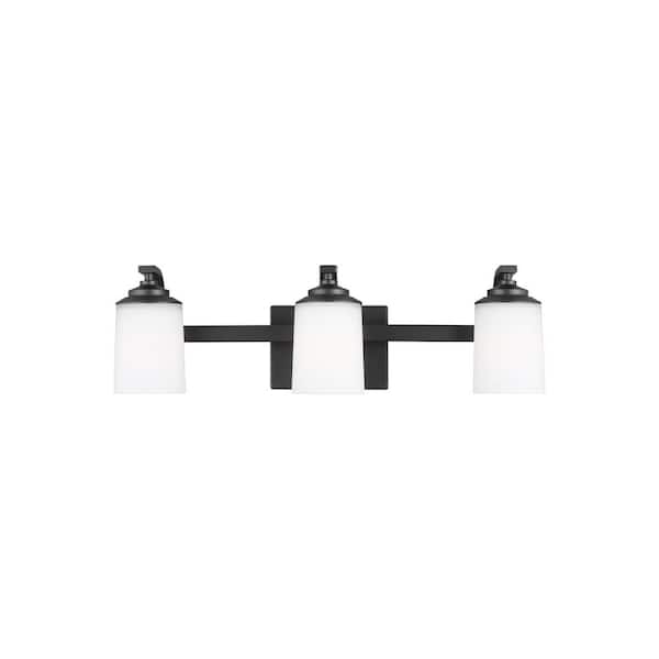 Kemal 24 in. 3-Light Matte Black Traditional Wall Bathroom Vanity Light with Etched White Glass Shades