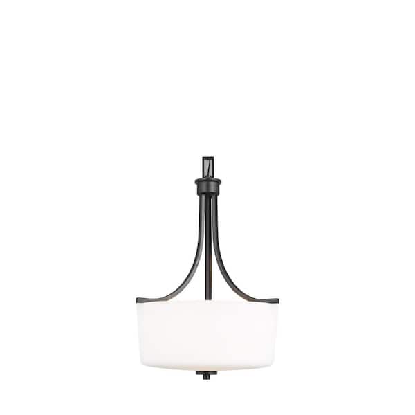Kemal 3-Light Midnight Black Pendant with Etched/White Inside Glass Shade