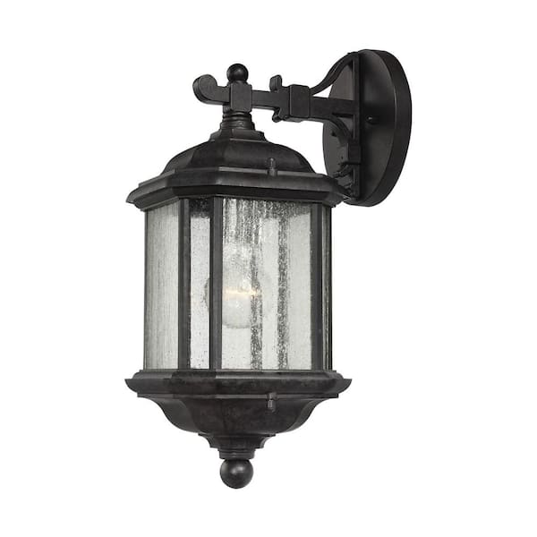 Kent 1-Light Oxford Bronze Outdoor 15 in. Wall Lantern Sconce with Clear Seeded Glass