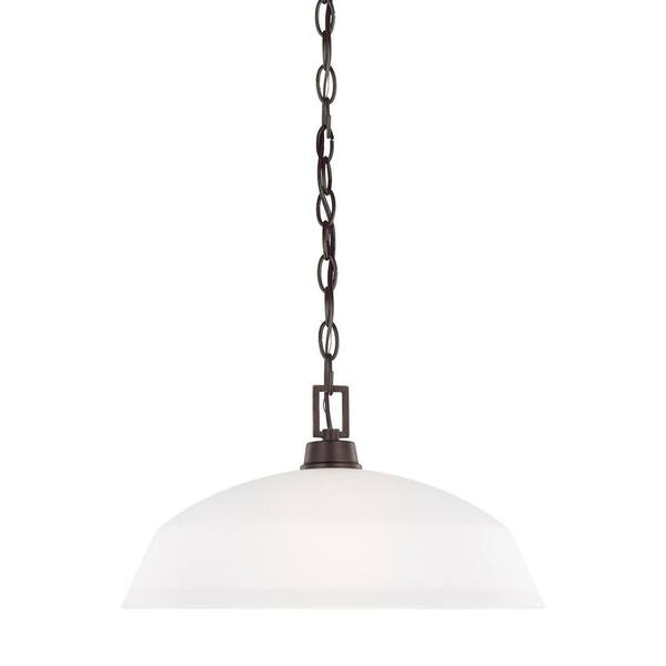 Kerrville 1-Light Bronze Traditional Transitional Hanging Pendant with Satin Etched Glass Shade