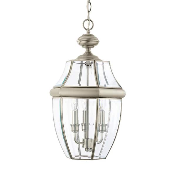 Lancaster 3-Light Antique Brushed Nickel Outdoor Hanging Pendant with Dimmable Candelabra LED Bulb