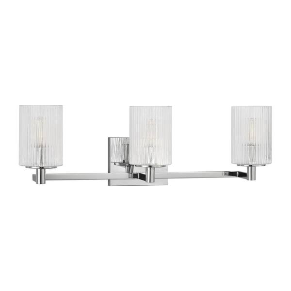 Lando 24.625 in. W 3-Light Chrome Bathroom Vanity Light with Clear Fluted Glass Shades and LED Bulbs Included