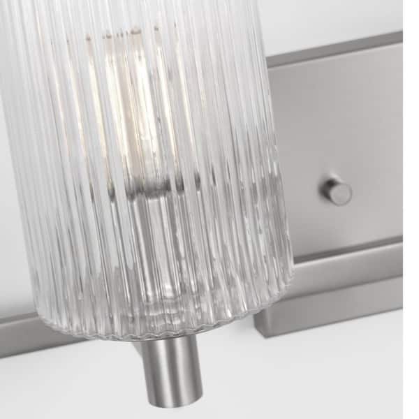 Lando 35 in. W x 7.75 in. H 4-Light Brushed Steel Bathroom Vanity Light with Clear Fluted Glass Shades