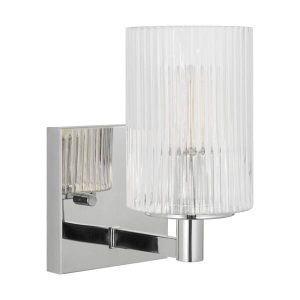 Lando 4.75 in. W 1-Light Chrome Dimmable Wall Sconce with Clear Fluted Glass Shade and LED Bulb Included