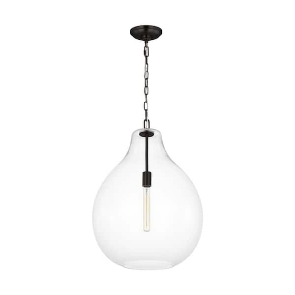 Magnus Extra Large 1-Light Aged Iron Pendant Light with Clear Glass Shade