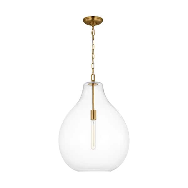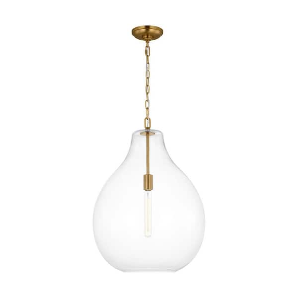 Magnus Extra Large 1-Light Burnished Brass Pendant Light with Clear Glass Shade