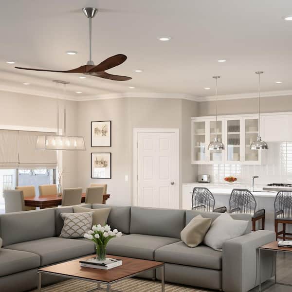 Maverick 60 in. Modern Indoor/Outdoor Brushed Steel Ceiling Fan with Koa Balsa Blades and 6-Speed Remote Control
