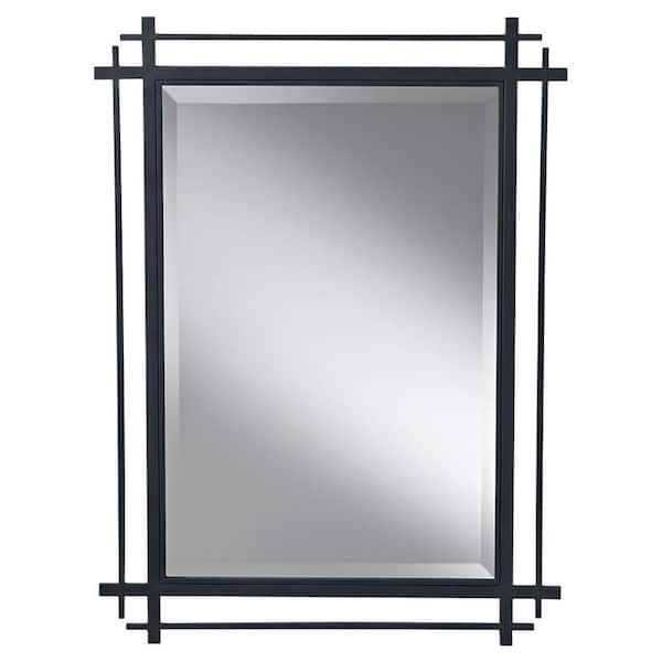 Medium Rectangle Antique Forged Iron Beveled Glass Art Deco Mirror (37 in. H x 27.1875 in. W)