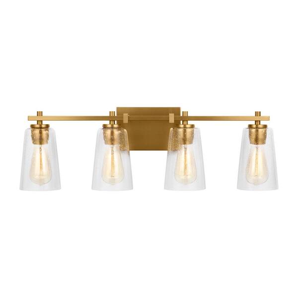 Mercer 28.625 in. 4-Light Burnished Brass Traditional Vanity Light with Clear Seeded Glass Shades