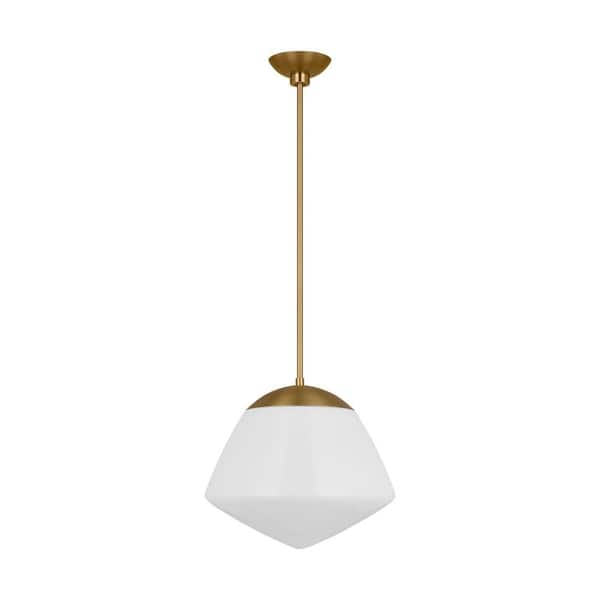 Milne Small 1-Light Burnished Brass Modern Pendant Light with White Milk Glass Shade