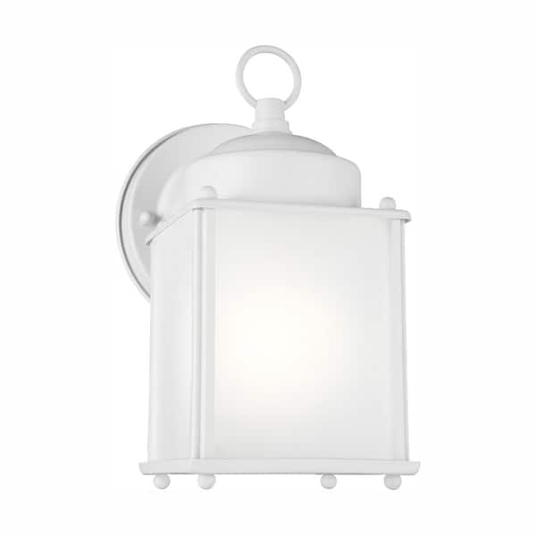 New Castle 1-Light White Outdoor 8.25 in. Wall Lantern Sconce with LED Bulb