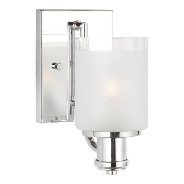 Norwood 5 in. 1-Light Chrome Vanity Light with Clear Highlighted Satin Etched Glass Shades